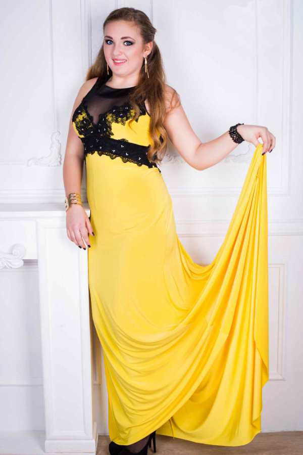 Полненьким девушкам желательно обратить внимание на платье с вертикальными вставками, которые способны зрительно вытягивать силуэт.