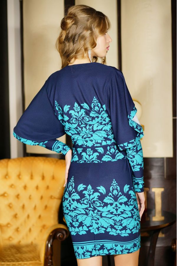 Костюм "Мадлен" состоит из платья и накидки, и изготовлен из принтованого стрейч-трикотажа. В таком комфортном костюмчике приятно провести время как в душевной компании, так и в огромном мегаполисе, совершая покупки. Длина платья 90 см. Длина рукава 65 см. Отделка: Застёжка-клипса со стразами "Сваровски"