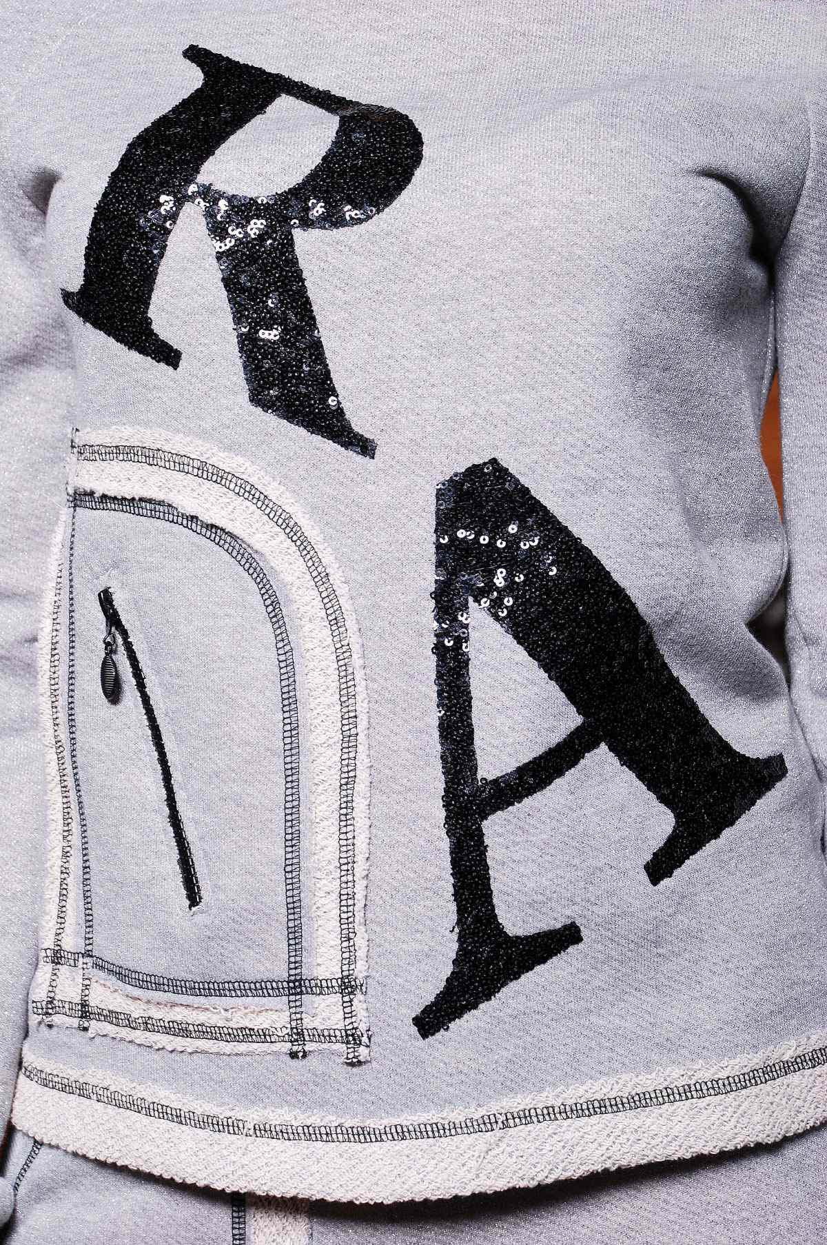Костюм "Торнадо" обладает уникальным сочетанием комфорта и современного стиля. Модель украшена аппликацией в виде больших черных букв. На рукавах имеются манжеты. Оригинальный элемент - декора: карман со змейкой. Брюки дополнены карманами и манжетами. Пояс эластичный, не вызывающий дискомфорта во время движения. Трикотажный спортивный костюм Торнадо с едва уловимым блеском подчеркнет отменный вкус хозяйки и привлечет внимание окружающих!