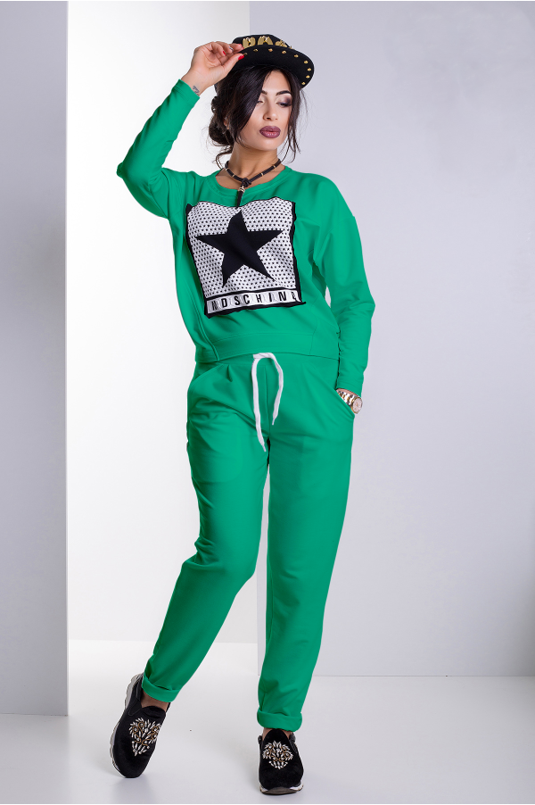 Невероятно стильный и комфортный спортивный костюм "Делайт" состоит из джемпера свободного силуэта и брюк на резинке. Джемпер украшает оригинальная аппликация-накатка. Длинные рукава со спущенной проймой, что обеспечивает свободу движений, а также придает раскрепощенность силуэту. Брюки свободного кроя с карманами и аппликацией в виде надписи. Костюм Делайт подарит вам драйв и хорошее настроение в любой из дней!