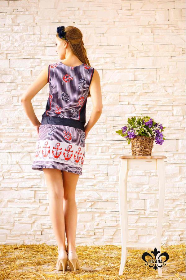 Очаровательное и легкое платье-туника создано в морском стиле. Модель имеет удобный крой. Застежка в виде потайной молнии расположена вдоль центра до талии. Изготовлена туника из натуральных материалов, а это значит, что в ней вам будет гарантирован максимальный комфорт в жаркий летний день.¶ Длина изделия: S-M (44-46) - 86 см, M-L (46-48) - 88 см