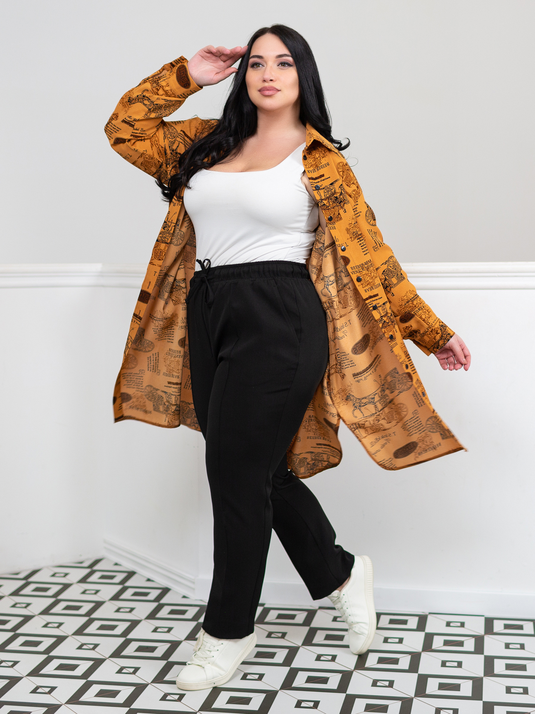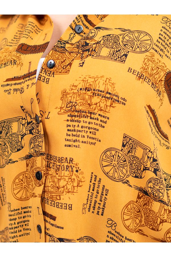 Легкая принтованная рубашка-платье обладает свободным, не стесняющим движений кроем. Спинка изделия удлинена, по бокам разрезы. Рубашка и манжеты рукавов застегиваются на пуговицы.